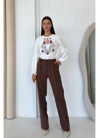 Стильна блуза з вишитими рукавами. Довжина виробу на розмір S: 62 см, довжина рукава: 68 ??см, обхват грудей: 90 см, обхват талії: 102 см. Довжина виробу на розмір M: 62 см, довжина рукава: 68 ??см, обхват грудей: 94 см, обхват талії: 106 см. Довжина виробу на розмір L: 62 см, довжина рукава: 68 ??см, обхват грудей: 98 см, обхват талії: 110 см. Довжина виробу на розмір XL: 62 см, довжина рукава: 68 ??см, обхват грудей: 112 см, обхват талії: 114 см. Довжина виробу на розмір XXL: 62 см, довжина рукава: 68 ??см, обхват грудей: 116 см, обхват талії: 118 см. Довжина виробу на розмір 3XL: 62 см, довжина рукава: 68 ??см, обхват грудей: 120 см, обхват талії: 122 см. Довжина виробу на розмір 4XL: 62 см, довжина рукава: 68 ??см, обхват грудей: 124 см, обхват талії: 126 см. Склад виробу: 97% полієстер, 3% еластан.