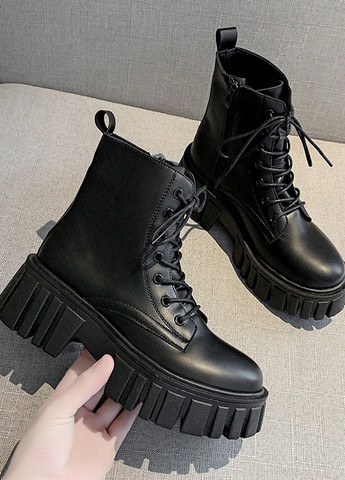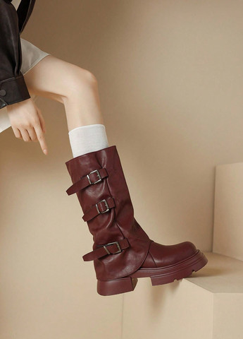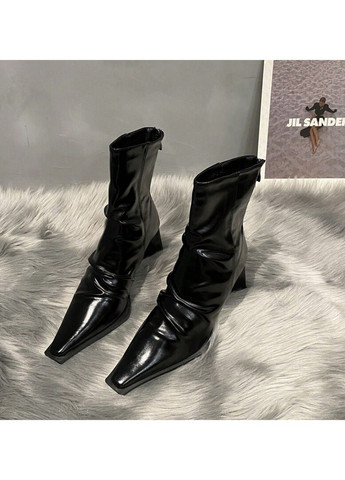Черевики, розроблені для сезону осінь/зима 2024 року. Ці черевики виконані у французькому стилі та мають товстий підбор для збільшення зростання. Вони мають круглу шкарпетку і водонепроникну конструкцію, і застібку-блискавку ззаду.