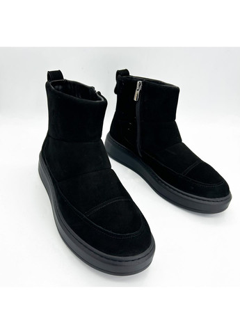 Черевики фабрики Stepter. Черевики виконані з чорної замші, що надає їм елегантного вигляду та робить їх ідеальними для зимового сезону. Всередині взуття утеплене натуральною вовною, що забезпечує тепло та комфорт навіть у найхолодніші дні. Підошва виготовлена з міцного матеріалу з висотою підбору 4 см, що забезпечує стійкість та зручність при ходьбі. Черевики мають блискавки для зручного носіння. Ці черевики чудово підійдуть для щоденного носіння взимку, зберігаючи ноги в теплі та комфорті.
