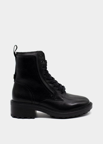 Черевики чорні NEW LOOK (110551) Girls Lace Up Buckle Chunky Biker Bootsin black. Черевики байкерські утеплені із штучної шкіри та текстилю на платформі та підборах, застібка спереду на шнурівці, збоку на блискавці. Висота підборів 4 см, платформа 2 см, довжина устілки 25 см. Країна бренду - Великобританія, країна виробництва - Китай.