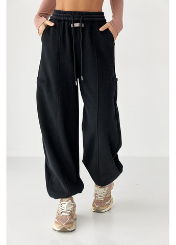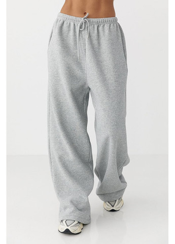 Ширина по стегнах: M – 60см; L – 62см; XL - 64см | Довжина по бічному шву, см: M - 108см; L – 108см; XL - 108см | Довжина по кроковому шву, см: M - 80см; L – 80см; XL - 80см | Ширина по талії / поясу, см: M - 34см; L – 35см; XL - 36см Модель 86*60*92 зріст 173 Жіночі теплі спортивні штани - практичний та стильний вибір для холодної пори року, що поєднує комфорт та сучасний дизайн. М'який плюшевий начіс зсередини дарує приємне тепло, а вільний крій забезпечує свободу рухів та невимушений силует._x000D_