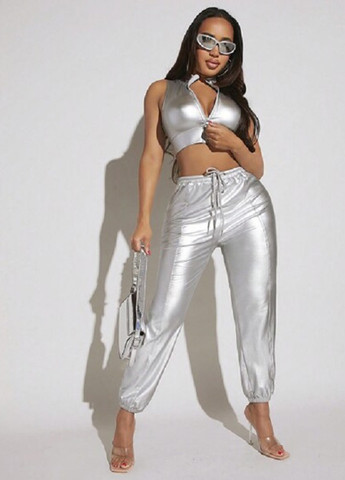 Колір Срібний / Матеріал Поліестер / Фасон Джогери / Висота посадки Висока талія / Візерунок Однотонний