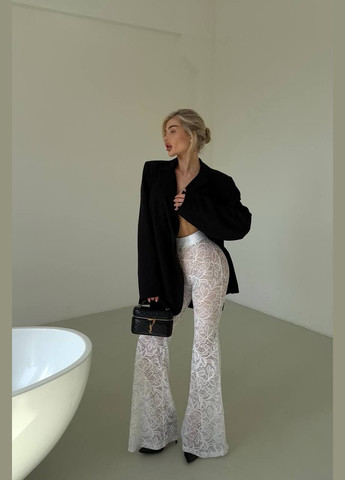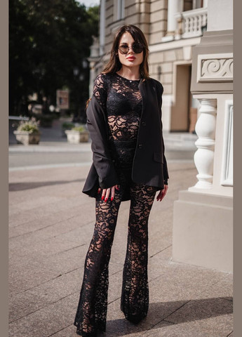 ❗️❗️❗️ПЕРЕД ЗАМОВЛЕННЯМ ОЗНАЙОМТЕСЬ З ЗАМІРАМИ НИЖЧЕ❗️❗️❗️ Розмір 42/44 Обьєм талії: 64-70 см Обьєм стегон: 90-95 см Довжина: 122 см По внутрішньому шву:90 см Розмір 46/48 Обьєм талії: 70-78 см Обьєм стегон: 95-100 см Довжина: 122 см По внутрішньому шву: 90 см Тканина тягнеться ! Розкішні жіночі штани-кльош, повністю виконані з чорного мережива, створюють елегантний і сміливий образ. Напівпрозора текстура додає загадковості, а вишуканий малюнок мережива підкреслює витонченість стилю. Широкий крій кльош забезпечує граційність рухів і акцентує на сучасному силуеті. Ідеально підходять для вечірніх заходів, романтичних зустрічей або святкових образів. Штани гармонійно поєднуються з однотонними боді, топами чи блузами, створюючи ефектний і незабутній вигляд.