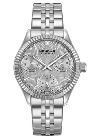 August Steiner - американський бренд чоловічого і жіночого годинника, заснований на рубежі століть. Характеризується в основному широким асортиментом стильних годинників, які подобаються як чоловікам, так і жінкам. Доступність можлива завдяки класичним матеріалам (сталь, сплав, скло Harlex), але мозок годинник залишається надійним швейцарським механізмом. Це перетворює годинник August Steiner на розкіш, якою може володіти кожен. Жіночий стильний годинник. Корпус із недорогоцінного металу сріблястого кольору з браслетом із натуральної шкіри чорного кольору. Фіксований рифлений безель сріблястого кольору. Сріблястий циферблат з люмінесцентними стрілками сріблястого кольору та годинниковими мітками. Арабські цифри позначають позиції 4, 8 та 12 годин. Хвилинні позначки з арабськими цифрами (з 5-хвилинним інтервалом). Хвилинні позначки по зовнішньому краю. Тип циферблату: Аналоговий. Люмінесцентні стрілки та кийки. Відображення дати у положенні "3 години". Три багатофункціональні допоміжні циферблати відображають: 24 години (GMT), дату і день тижня. Кварцовий механізм. Стійке до подряпин мінеральне скло. Потягніть/натисніть головку. Закрутити задню кришку. Кругла форма корпусу. Розмір корпусу: 33 мм. Товщина: 10,5 мм. Ширина стрічки: 16 мм. Довжина ремінця: 8 дюймів. Застібка пряжка. Функції: дата, день тижня, години, хвилини, секунди, GMT. Механізм: швейцарський багатофункціональний кварцовий. Водонепроникність: 1 АТМ/10 метрів (бризкозахист). Поставляються у коробці з плюшевою подушечкою. Є дефект потертості на задній кришці та браслеті годинника (сліди від примірки), який не впливає на роботу годинника.
