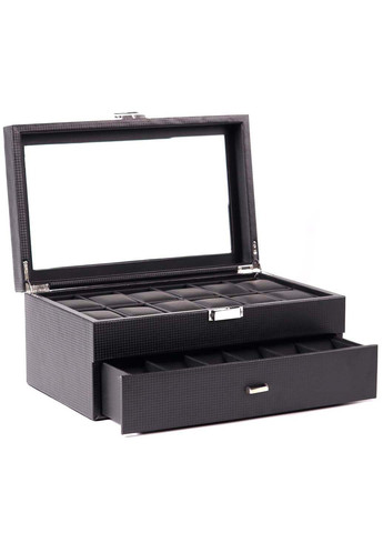 Кейс для транспортування/зберігання 4-х годинників. Матеріал корпусу - PVC шкіра з тисненням під карбон. Колір - чорний. Інтер’єр - PVC шкіра з тисненням під карбон. Виробник - Craft, Taiwan. Розміри шкатулки: довжина 17,8 см ширина 13,5 см висота 5,5 см