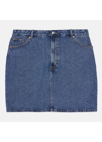 Джинсова спідниця міді-довжини з п'ятьма кишенями та розрізом спереду. Звичайний крій. Висока талія. Довжина міді. Застібка на блискавку та ґудзики. Виготовлена ​​з органічної та переробленої бавовни. Обхват талії в розмірі 38 = 74 см, довжина = 88 см.