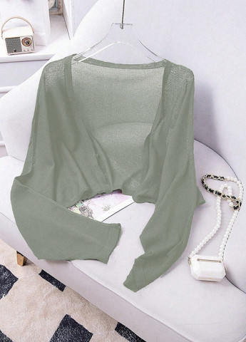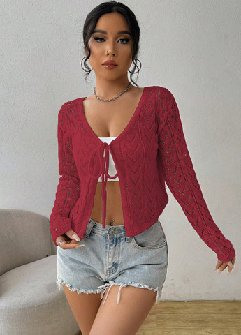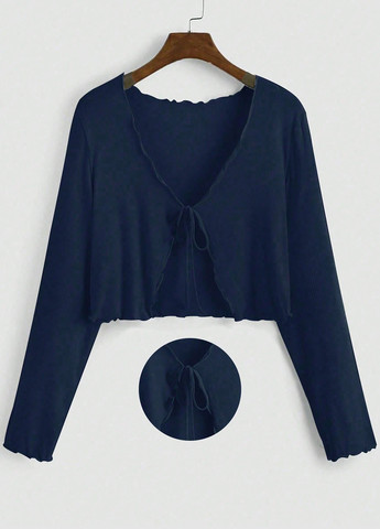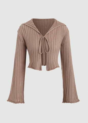 Кардиган з довгими рукавами, розкльошеними рукавами та V-подібним вирізом. Зав'язка спереду та еластична тканина для комфорту.