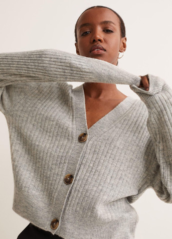 Колір Сірий / Візерунок Меланж / Фактура В'язана / Застібка На гудзиках / Сезонність Всесезон / Матеріал Поліестер, Вовна / Склад 52% поліестер, 40% акрил, 5% вовна, 3% еластан