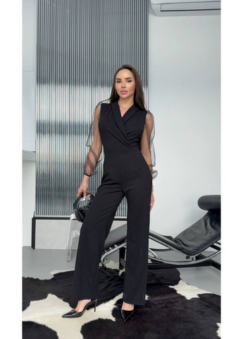 Низ — брючний комбінезон зі струмкими штанинами, що формують витончений силует та забезпечують комфорт у русі. Завдяки продуманому крою модель ідеально підходить для вечірок, свят і особливих подій.