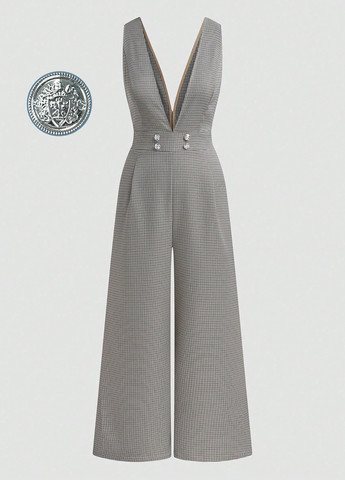 Комбінезон має оригінальний принт «гусяча лапка», що додає образу виразності. Ця модель ідеально підходить для створення легких, повсякденних та святкових образів.
