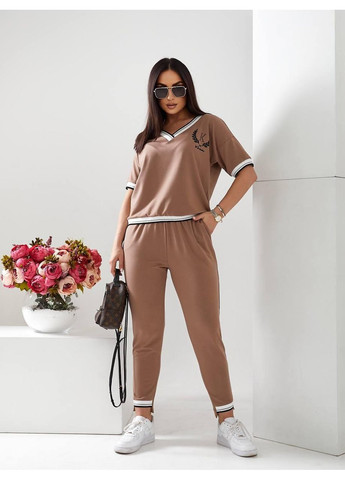 Костюм двійка повсякденний, стриманий, тонкий з двонитки. Напис Khan виповнен на футболці посередині та на штанинах знизу золотим кольором, що придає йому неповторного шарму.