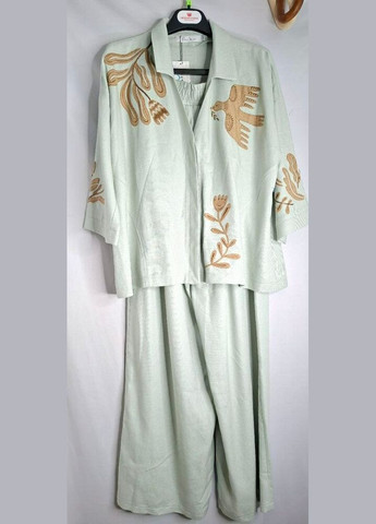 КОМЕНТАР СТИЛІСТА Костюм «Палермо» — стримана класика з характером. Прямий жакет із відкладним коміром і делікатною вишивкою підкреслює витонченість фігури, а широкі брюки з високою посадкою додають образу легкості та впевненості. Вертикальна смужка витягує силует і надає образу елегантності. Такий костюм універсальний — чудово виглядає і в офісі, і на ділових зустрічах, і в повсякденному житті. Трикотаж помірної еластичності забезпечує комфорт і не втрачає форму навіть після численних прань. Ви можете комбінувати костюм із власним поясом, створюючи різні настрої — від строгої класики до сучасного smart casual. Модель відповідає стандартній українській розмірній сітці. Ви можете легко визначити свій розмір, вимірявши сантиметровою стрічкою груди і поділивши це значення на 2 — це буде ваш розмір. Всі фотографії зроблені нами у шоурумі без обробки в фотошопі на звичайних дівчатах, щоб ви могли побачити реальну картину. ФАКТИЧНІ ЗАМІРИ ПО ВИРОБУ (ЖАКЕТ) Обхват у плечах: 42/44 – 88 см, 46/48 – 94 см, 50/52 – 100 см, 54/56 – 106 см, 58 – 112 см Обхват грудей: 42/44 – 122 см, 46/48 – 130 см, 50/52 – 138 см, 54/56 – 146 см, 58 – 154 см Обхват талії: 42/44 – 118 см, 46/48 – 126 см, 50/52 – 134 см, 54/56 – 142 см, 58 – 150 см Довжина рукава: 42/44 – 63 см, 46/48 – 64 см, 50/52 – 65 см, 54/56 – 66 см, 58 – 67 см Довжина по спинці: 42/44 – 73 см, 46/48 – 74 см, 50/52 – 75 см, 54/56 – 76 см, 58 – 77 см Довжина попереду: 42/44 – 73 см, 46/48 – 74 см, 50/52 – 75 см, 54/56 – 76 см, 58 – 77 см Обхват по низу: 42/44 – 132 см, 46/48 – 140 см, 50/52 – 148 см, 54/56 – 156 см, 58 – 164 см ФАКТИЧНІ ЗАМІРИ ПО ВИРОБУ (ШТАНИ) Обхват талії: 42/44 – 80 см, 46/48 – 88 см, 50/52 – 96 см, 54/56 – 104 см, 58 – 112 см Обхват стегон: 42/44 – 114 см, 46/48 – 122 см, 50/52 – 130 см, 54/56 – 138 см, 58 – 146 см Довжина внутрішнього шва: 42/44 – 78 см, 46/48 – 79 см, 50/52 – 80 см, 54/56 – 81 см, 58 – 82 см Довжина по боковому шву: 42/44 – 110 см, 46/48 – 111 см, 50/52 – 112 см, 54/56 – 113 см, 58 – 114 см Висота посадки спереду: 42/44 – 34 см, 46/48 – 35 см, 50/52 – 36 см, 54/56 – 37 см, 58 – 38 см Висота посадки ззаду: 42/44 – 38 см, 46/48 – 39 см, 50/52 – 40 см, 54/56 – 41 см, 58 – 42 см РЕКОМЕНДАЦІЇ ПО ДОГЛЯДУ Рекомендується делікатне прання при температурі до 30°C. Не використовувати відбілювачі. Сушити в розкладеному вигляді, уникаючи прямих сонячних променів. Праска з помірною температурою через тканину або парогенератор. ХАРАКТЕРИСТИКИ Сезон: всесезонний Силует: прямий Фасон: класичний костюм із жакетом і брюками Посадка: висока Пояс: можна придбати окремо (не входить у комплект) Кишені: функціональні Довжина виробу: жакет – до середини стегна, брюки – повна довжина Матеріал: трикотаж Склад тканини: 72% cotton, 15% wool, 13% elastane Тканина: помірно еластична, м’яка, приємна до тіла Підкладка: немає Декор: вишивка, брендова фурнітура Бренд: MODNA KAZKA Артикул: MKSH2849 Країна виробництва: Україна Розмірний ряд: 42/44 – 58 Розмірна сітка: стандартна українська