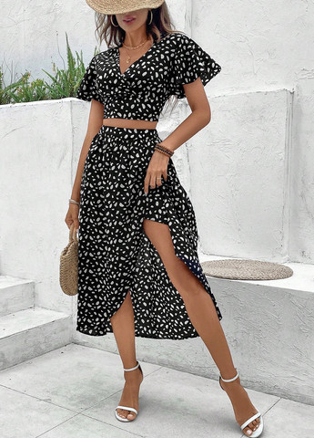 Колір Чорно-білий / Фасон Брючний, З сорочкою / Стиль Кежуал / Візерунок Абстрактний / Матеріал Шовк