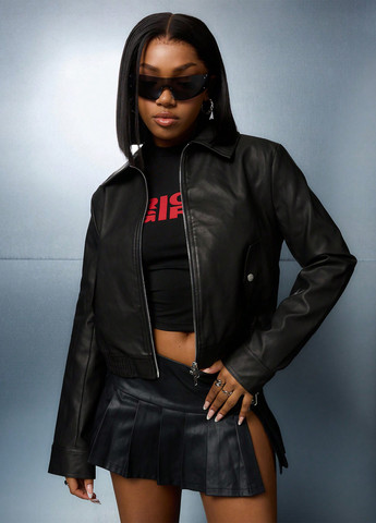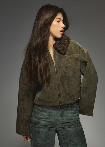 Ця куртка відрізняється сучасним дизайном з акцентами зі штучного хутра. Вона включає байкерський стиль зі штучної шкіри. Посадка стандартна. Вона має контрастне штучне хутро, кишені та застібку-блискавку. Рукави спущеного плеча. Тканина не тягнеться. Поділ має стандартну форму, а виріз горловини є коміром.