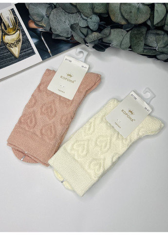 Набір з 2 пар жіночих шкарпеток від бренду Корона забезпечить вашим ногам максимальний комфорт і тепло навіть у холодну пору року. Висока якість махрового матеріалу робить ці шкарпетки незамінними для повсякденного користування.