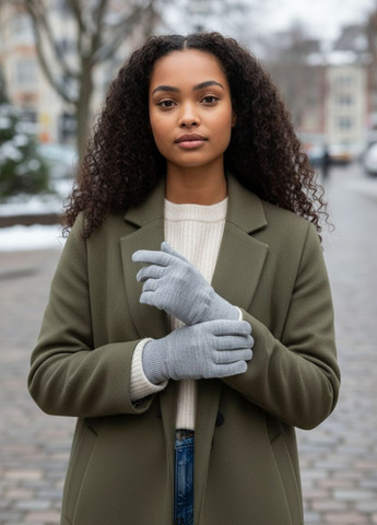 До пальто обирай сенсорні рукавички нейтральних кольорів: чорні, сірі, бежеві.