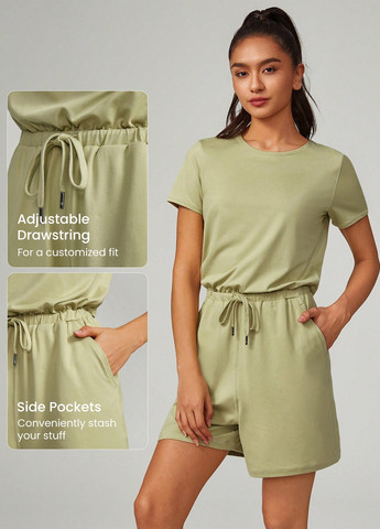 Жіночий комбінезон Innovista Activewear – чорний. Цей стильний комбінезон має сучасний спортивний вигляд. Він прикрашений чорним фольгованим принтом на всій поверхні. Комбінезон має крій, що облягає, і застібається на блискавку. Він виготовлений із високоеластичного трикотажного полотна із суміші поліестеру та еластану.