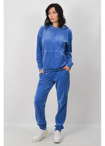 спортивний велюровий комплект; худі вільного крою з капюшоном та кишенею-кенгуру; опущена лінія плеча; штани з бічними кишенями утримуються на талії вшитою гумкою, середня лінія талії; широкі манжети на рукавах та штанах.