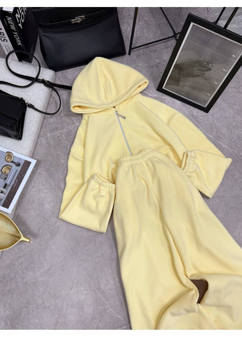 Флісовий костюм з джоггерами та еластичними манжетами, декорований тонкою тасьмою. Толстовка з укороченою блискавкою та коміром стійкою оснащена довгими рукавами, нижньою куліскою та нашивкою. Штани на гумках оснащені бічними кишенями. Напівобхват: Кофта: Груди: S (56), M (58), L (60), XL (62), XXL (64), 3XL (66), Довжина виробу 57 59*, Рукав 55 58*, Штани: Талія: S (32 42), M (34 44), L (36 44), XL (38 48), XXL (40 50), 3XL (42 52), Стегна: S (48), M (50), L (52), XL (54), XXL (56), 3XL (58), Довжина виробу 101 103*, Довжина по внутрішньому шву 78, Тканина: Середньої еластичності.