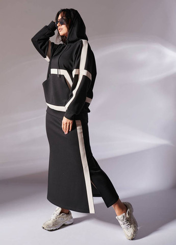 Жіночий костюм — це елегантний і модний вибір, який поєднує стиль і комфорт. Тканина м'яка, з характерною текстурою у дрібний рубчик, приємна на дотик і добре тримає форму. Ідеальний для офісу, прогулянок чи особливих подій.