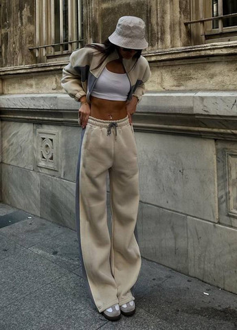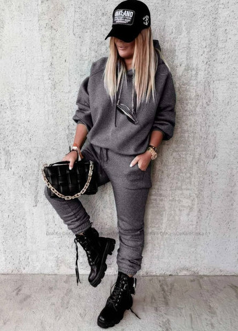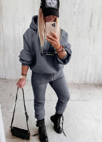 Трендовий костюм з начосом. Худі з капюшоном. Штани на резинці, з манжетами по низу і зручними кишенями.