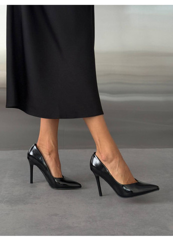 Елегантні туфлі у класичному чорному кольорі – безпрограшний вибір для будь-якого образу. Глянцева екошкіра додає розкоші, а шкіряний підклад забезпечує комфорт упродовж усього дня. Витончений підбор 10,5 см підкреслює жіночність та елегантність. Ідеально сідають на середню та більш вузьку стопу.