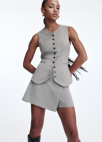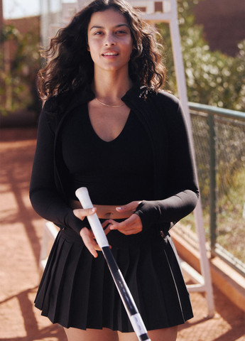 Коротка спідниця-шорти з швидковисихаючої функціональної тканини з короткими внутрішніми колготками. Спідниця-шорти має прикриту гумку на талії та розріз спереду. Без підкладки. Внутрішня сторона штанини: довжина: 11 см (розмір M), передня сторона: довжина: 37,5 см (розмір M.) Можливо пошкоджена бірка.