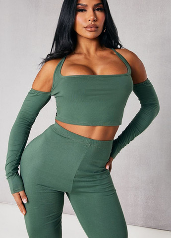 Топ має асиметричний дизайн, вирізи та безшовну конструкцію. Він виготовлений із високоеластичного трикотажу та не має кишень. Модель вузького крою ідеально підходить для повсякденного літнього одягу.