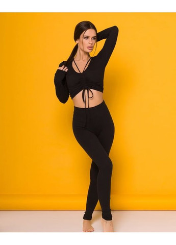 Чорний еластичний топ з віскозного трикотажу з куліскою та тасьмою. Модель короткої довжини з довгими рукавами та напівкруглою горловиною. Напівобхват: Груди: S(36), M(38), L(40), XL(42), Довжина виробу - 37, Рукав - 61, Тканина: Висока еластичність.