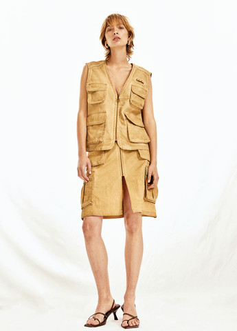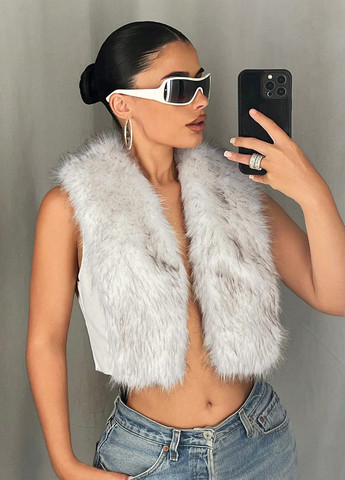 SHEIN ICON жіночий пухнастий жилет без рукавів зі штучної шкіри. Цей стильний жилет без рукавів прикрашений контрастними деталями з м'якого штучного хутра і має гладкий крій, що облягає. Виготовлений з гладкої штучної шкіри, він виглядає сучасно та стильно. Відкрита передня конструкція дозволяє легко накладати кілька шарів.