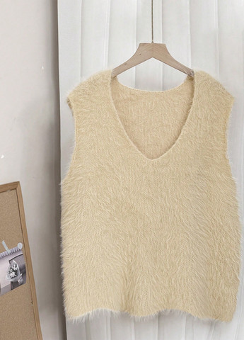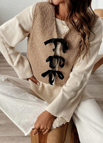 Стильний в'язаний жилет з V-подібним вирізом забезпечує тепло і комфорт. Він виконаний із невеликим розтягненням. Жилет має стандартний крій та стандартну форму подола. Ідеально підходить для носіння восени та взимку.