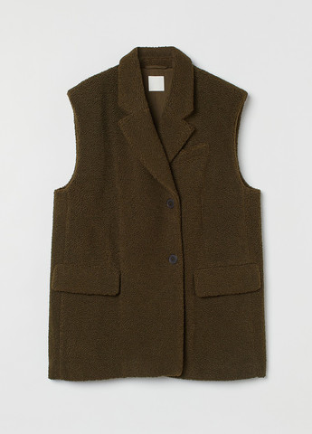 Цей жилет призначений для осінньо-зимового сезону. Він має довжину за коліно та вільний крій. Виріз з лацканами. Застібка на гудзики та кишені. Тканина не тягнеться.