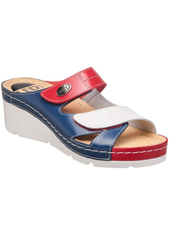 LEDI Аnatomic - це зручне анатомічне взуття, яке забезпечить Вам "найзручніші 24 години". Компанія-виробник була заснована ще в 1982 році і ось вже багато років є відомим брендом анатомічного і лідером продажів медичного взуття. Шльопанці анатомічні LEDI 404 зручні і комфортні. Вони підтримають анатомічне склепіння стопи, захистять ноги від перевтоми, забезпечать комфорт, легкість в стопах і спині. Повноту взуття можна регулювати ремінцями. Рекомендується до носіння: При сильно вираженій плоскостопості; У період реабілітація після травм і оперативних втручань на нижніх кінцівках; Кожному, у кого професійна діяльність пов'язана з тривалим перебування на ногах. Особливості анатомічного взуття LEDI Anatomic: Підошва анатомічної форми (знімає навантаження з суглобів ніг і хребта); Виготовлена з натуральної шкіри і якісних поліуретанових матеріалів; Всі деталі якісно і надійно прошиті; Якісне виконання і відповідність міжнародним стандартам забезпечують довговічність (навіть при щоденному використанні). Функції: Правильний розподіл навантаження на стопи; Помітна легкість при тривалому перебуванні "на ногах"; Профілактика хвороб стопи (в т.ч. шпори п'ят); Корекція поздовжньої і поперечної плоскостопості; Поліпшення кровообігу, зниження набряклості і профілактика варикозного розширення вен; Зниження навантаження на суглоби і хребет (точне повторення вигину стопи); Комфортне пересування людей з надмірною вагою. Матеріал верху: Натуральна шкіра (забезпечує необхідні гігієнічні властивості, попереджає натирання шкіри). Матеріал устілки: Устілка з натуральної та м'якої велюрової шкіри точно повторює анатомічні вигини стопи, забезпечить необхідні гігієнічні властивості, не дозволить нозі пітніти. Значно покращує комфорт при носінні. Підошва: Поліуретанова нековзка підошва анатомічної форми з нішею під п'яту (стабілізує п'яту, забезпечує стопі тверду опору). Край підошви спеціально високо розташований (охоплює стопу і захищає пальці). Виробник: LEDI Аnatomic (Сербія). Таблиця розмірів: