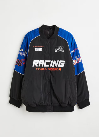 Легко утеплена бейсбольна куртка з вишитими аплікаціями та мотивами. Вільний крій з коротким ребристим коміром, рукавами реглан та скошеними кишенями. Ребристі манжети та поділ. На підкладці. Рукав: довжина: 77,3 см (розмір M), спинка: довжина: 64,2 см (розмір M)