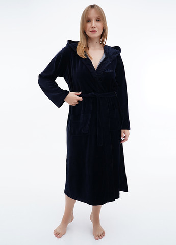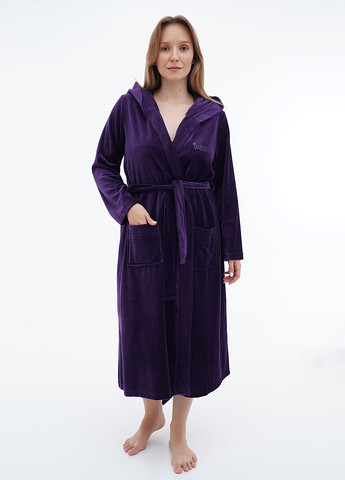 Велюровий халат на змійці, подовжена модель. Рукав 3/4, Дві бічні кишені. Комір обшитий тасьмою і прикрашений стразами. Принт дрібна квітка.