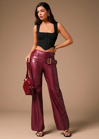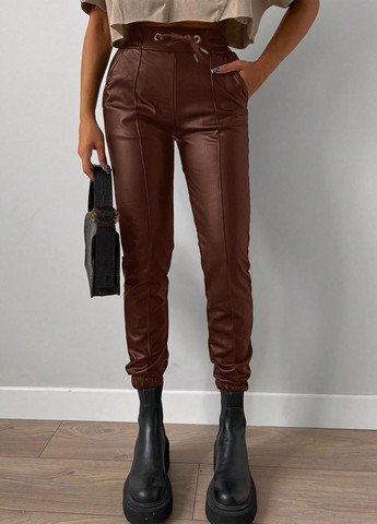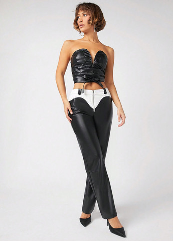 Колір Чорний / Матеріал Поліестер, Штучна шкіра / Фасон Завужені / Висота посадки Висока талія / Візерунок Однотонний