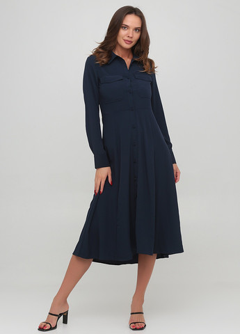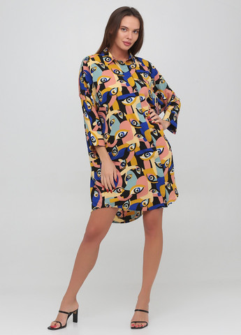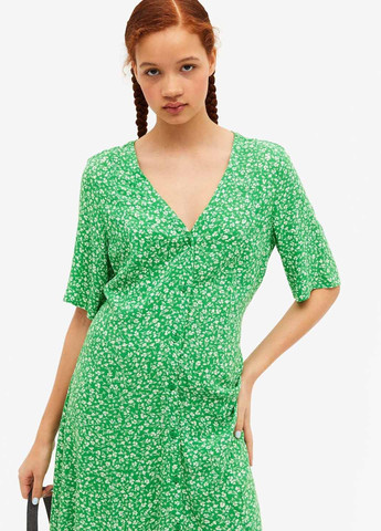 Сукня з V - подібним вирізом горловини, короткий рукав. Застібається на гудзики спереду.