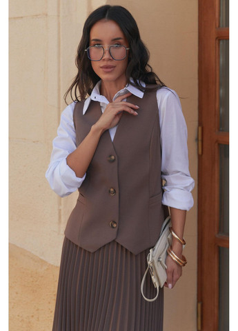 Стильний жилет із колекції Pre-fall 25 — це вдале поєднання класики та сучасності. Виготовлений із якісної турецької костюмки, він приємний до тіла, тримає форму та виглядає дорого.