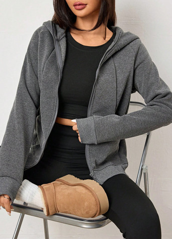 Толстовка спортивна на блискавці MISSGUIDED. Ця толстовка з каптуром та спущеним плечем має стандартну довжину з довгими рукавами. Тканина трохи тягнеться. Толстовка виготовлена з трикотажної суміші віскози, поліестеру та еластану. Підходить для повсякденного носіння. Можна прати у пральній машині або чистити у хімчистці.