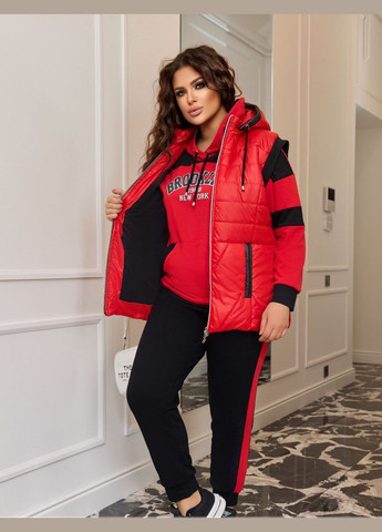 Наповнювач-синтепон 150, підкладка (до - 5°С). Привабливий жилет батал із капюшоном, з підкладкою, прошитий. По сторонам - врізані кишені з блискавкою. Застібається на блискавку, розташовану по центру, від капишона до низу. Орієнтовні заміри готового виробу: 50-52 р-р: довжина жилета 80/87 см, ОГ - 118 см, ОТ - 118 см, ОБ - 124 см. 54-56 р-р: довжина жилета 82/89 см, ОГ - 126 см, ОТ - 126 см, ОБ - 132 см. 58-60 р-р: довжина жилета 84/91 см, ОГ - 134 см, ОТ - 134 см, ОБ - 140 см. 62-64 р-р: довжина жилета 86/93 см, ОГ - 142 см, ОТ - 142 см, ОБ - 148 см.