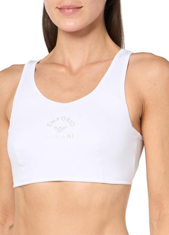 Жіночий бюстгальтер Emporio Armani. Топ з еластичної бавовни. Ця модель стриманого та жіночного дизайну забезпечує максимальний комфорт та ідеальну посадку. Бра з еластичної бавовни з широкими бретелями і гумкою на талії. Спереду прикрашається контрастним логотипом бренду зі страз. Бюстгальтер виготовлений з еластичної тканини, що поєднує комфорт і легкість. Спеціальна конструкція підтримує та утримує груди в ідеальному положенні. Без застібки. Відмінна якість.