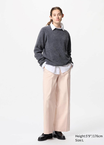 Широкі штани UNIQLO з елегантною посадкою на талії та прямим кроєм. Лаконічна модель із мінімальною кількістю деталей. Щільна приємна тканина. Застібаються на блискавку та гудзик. Дві бічні кишені і дві прорізні ззаду. Є петлі для ременя. Відмінна якість.