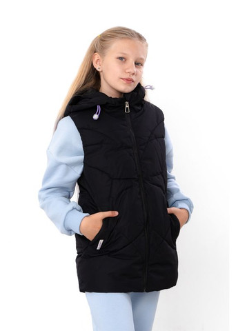 Тканина: Плащівка Наповнювач: Холофайбер Зріст: 146-170 Демісезонна жилетка крій прямий вільна для дівчинки з холофайберовим наповнювачем — незамінна річ для холодної пори року. Плащівка якісний матеріал забезпечує комфорт та захист від вітру. Прямий крій дозволяє носити під нею теплі речі. Модель стьобана горизонтальними лініями з бічними кишенями на блискавках. Фіксований капюшон зручно захищає голову. Жилетка проста у догляді та довговічна розміри на зріст 146-170.