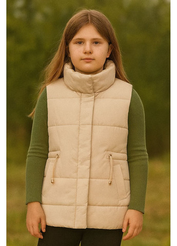 Практичний дитячий жилет світло-бежевого кольору. Цей легкий і зручний жилет ідеально підходить для демісезонної погоди. Виготовлений з якісних матеріалів, він забезпечує додаткове тепло та комфорт, не обмежуючи рухів. Розміри: 140-164