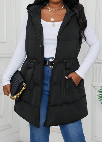 Жилет-пуховик з капюшоном та блискавкою, оздобленням з пуху. Цей жилет теплий та стильний. Він має капюшон та стандартний поділ. Жилет без підкладки, виготовлений із поліестерової тканини. Застібається на блискавку. Колір бежевий. Підходить для весни та осені (18-25 ° C / 63-77 ° F). Ручне прання або професійне хімчистка.