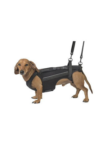 Довжина від холки до початку хвоста 33-38 см; обхват грудної клітки 45-60см. Підтримка для всього тулуба Frakishtak для тварин, підходить для собак усіх порід і котів. Підтримку можна використовувати як сумку-переноску під час нетривалих прогулянок або під час фізіотерапії. ЗАСТОСУВАННЯ: - порушення координації руху (атаксія), наприклад, після інсульту, черепно-мозкових травм, нервової форми чуми тощо, - травми і захворювання хребта, - після ампутації лап, - при різних захворюваннях суглобів і зв'язок, коли потрібна додаткова допомога при пересуванні. Чотири ручки кріпляться в оптимальних точках, щодо ваги тіла для правильного розподілу навантаження. Якщо потрібна часткова підтримка, наприклад, допомога під час пересування і коригування рівноваги тварини, дві ручки можна відстебнути від підтримки за допомогою карабінів. У місцях найбільшого тиску - під грудною кліткою і під задніми лапами використовується м'який і пружний неопрен. Бічні вставки виконані з кордури і 3Д-сітки з виворітного боку. Кордура - товста нейлонова тканина з особливою структурою нитки, з водовідштовхувальним просоченням і з поліуретановим покриттям. 3Д сітка - завдяки своїй структурі забезпечує циркуляцію повітря. Лямки під задніми лапами регулюються за довжиною і відстібаються за допомогою фастексів (застібок), що значно полегшує одягання підтримки. Використовується високоміцна фурнітура.