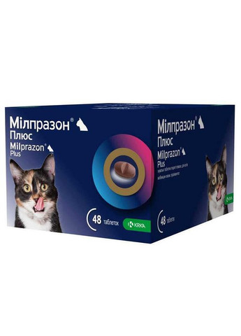 Мілпразон підходить для кошенят та дорослих кішок вагою від 2-х кг. Таблетки від глистів мають апетитний смак м'яса, завдяки чому вони легко приймаються вихованцем разом із кормом або окремо. Склад і форма Milprazon cat: Для кошенят і котів до 2 кг - мілбеміцину оксим (milbemycin oxime) 4 мг і празіквантел (praziquantel) 10 мг. Для кішок вагою від 2 кг - мілбеміцину оксим (milbemycin oxime) 16 мг і празіквантел (praziquantel) 40 мг. Допоміжні компоненти: мікрокристалічна целюлоза 20.80 мг, лактози моногідрат 41.5 мг, розкармелоза натрію 7 мг, повідон 3 мг, кремній колоїдний безводний 1,2 мг, магнію стеарат 2,5 мг, опадрай білий 3,2 мг 10022) 0,4 мг, дріжджі сухі 0,2 мг, заліза оксид червоний 0,2 мг. Інструкція із застосування препарату Мілпразон: Застосовується для профілактики та лікування гельмінтозів, викликаних як дорослими особинами, так і личинками круглих гельмінтів та стрічкових хробаків - Dipylidium caninum, Taenia spp., Echinococcus spp., Ancylostoma tubaeforme, Toxocara таких як: нематодози; цестодози асоціативні нематодо-цестодозні інвазії Дозування: Препарат застосовують кішкам одноразово під час годування з невеликою кількістю корму або вводять примусово на корінь язика після годування в мінімальній терапевтичній дозі 2 мг мильбеміцину оксиму і 5 мг празиквантелу на 1 кг маси тварини з розрахунку: Для котів і кішок до 2 кг Дозування 0,5 - 1 кг ½ таблетки 2 - 4 кг ½ таблетки 1 - 2 кг 1 таблетка 4 - 8 кг 1 таблетка - - 8 -12 кг 1½ таблетки Дегельмінтизацію вагітних та годуючих кішок при необхідності проводять під наглядом ветеринарного лікаря. Попередньої голодної дієти та застосування проносних засобів перед дегельмінтизацією не потрібно. З лікувальною метою котів дегельмінтизують за показаннями, з профілактичною метою щокварталу, а також перед кожною вакцинацією та случкою в терапевтичній дозі. Одноразове застосування препарату з метою дегельмінтизації захищає кішок від зараження Dirofilaria immitis протягом одного місяця. Для подальшої профілактики дирофіляріозу доцільно застосовувати препарат із вмістом однієї діючої речовини мильбеміцину оксиму. Індивідуальна підвищена чутливість тварини до компонентів препарату (у тому числі в анамнезі), виражені порушення функції нирок та печінки. Не слід застосовувати препарат кошенятам молодше 6-тижневого віку та масою менше 0,5 кг. Не підлягають дегельмінтизації виснажені та хворі на інфекційні хвороби тварини. Упаковка препарату: таблетки розміщені у блістері, упаковані по 24 шт. (блістера) у картонну коробку Фасування: товар продається поштучно - 1 таблетка відповідного дозування Виробник: KRKA, Krka, d. d., Словенія