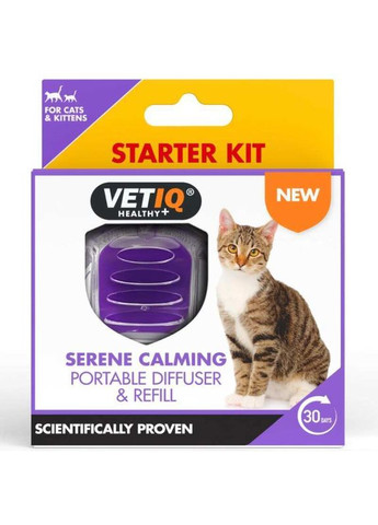 Цей змінний блок призначений для портативного заспокійливого дифузора VetIQ Serene Calming Diffuser Refill, спеціально розробленого для котів. Пристрій діє шляхом вивільнення феромонів в атмосферу, що допомагає розслабитись коту природним чином. Абсолютно нешкідливо для здоров'я та життя тварин та людей! Ефективно заспокоює кішок із підвищеною тривожністю. Можна застосовувати в післяопераційний період, після переїзду та адаптації вихованця до нових умов, при появі нового домашнього улюбленця в будинку та в багатьох інших подібних випадках! Пристрій охоплює площу до 65 м² та діє протягом 30 діб, після чого необхідна заміна вкладки. Особливості та переваги : ідеально підходить до портативного заспокійливого дифузору VetIQ Serene Calming Diffuser Refill; нешкідливо для здоров'я та життя тварин і людей; ефективно заспокоює природним чином. Склад : інертні інгредієнти 97%, феромон 3%.Склад матеріалів картриджа: алюмінієва мембранна фольга та поліетилентерефталатний мембранний ущільнювач. Комплектація : 1 картридж 6 мл/ml Рекомендації щодо застосування : вийміть картридж з упаковки та зніміть герметичну пломбу: потягніть фольговану стрічку вниз на звороті картриджа. Щоб запобігти протіканню, встановіть картридж у закруглений краєм догори. Розмістіть дифузор над рівнем статі в улюблених місцях кота: місцях відпочинку, сну або активності. Забезпечте вільну циркуляцію повітря для ефективної дії засобу. Увага: через 30 днів замініть використаний картридж новим VETIQ. Зверніть увагу: деяка кількість рідини може залишитись у картриджі. Попередження! У разі потреби медичної допомоги майте при собі упаковку або етикетку продукту. Утилізуйте вміст/контейнер відповідно до національного законодавства. Умови зберігання та термін придатності : зберігати у прохолодному, сухому та недоступному місці для дітей та тварин, далеко від прямих сонячних променів. Тримати подалі від джерел тепла, гарячих поверхонь, відкритого вогню та інших джерел займання. Термін придатності та номер партії вказано на упаковці.