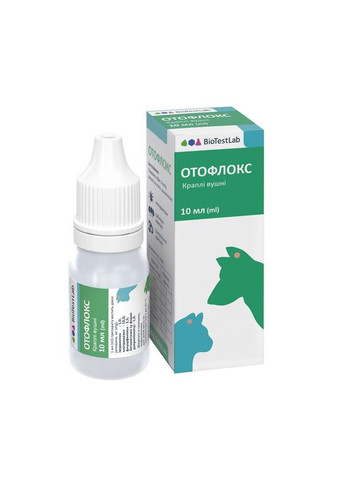Широкий спектр дії препарату обумовлений активними компонентами у складі препарату: івермектин, клотримазол, флуорфенікол, бетаметазон (у формі дипропіонату). Івермектин ефективний при ураженні тварини: вушним кліщем, бліхами, демодекозними кліщами. Перед застосуванням препарату слуховий прохід та вушні раковини попередньо очищають від вушної сірки, ексудату та струпів. Потім закопують Отофлокс 2 рази на добу, обов'язково в кожне вухо, в дозуванні, яке підбирається залежно від ваги тварини: до 1 кг - 1 крапля, від 1 до 5 кг - 2 краплі, від 5 до 10 кг - 3 краплі, від 10 до 15 кг - 4 краплі ветеринаром та ознайомтеся з ІНСТРУКЦІЄЮ, наведеною нижче!!! Інструкція застосування Вушні краплі Отофлокс Склад: 1 мл препарату містить діючі речовини: івермектин - 1 мг; клотримазол – 10 мг; флуорфенікол – 2,5 мг; бетаметазон (у формі дипропіонату) – 1 мг. Допоміжні речовини: диметилсульфоксид, етанол, поліетиленгліколь, пропіленгліколь. Фармакологічні властивості Отофлокс діє протипаразитарно, фунгіцидно, протимікробно; Фармакологічна дія Отофлоксу обумовлена властивостями івермектину, клотримазолу, флуорфеніколу та бетаметазону. Івермектин належить до групи авермектинів, які продукуються мікроорганізмами групи Streptomyces avermitilis. Івермектин у нематод, кліщів, комах та личинок оводів посилює зв'язок ГАМК (гамма-аміномасляної кислоти) зі спеціальними рецепторами на нервових закінченнях паразита, блокуючи тим самим іннервацію паразита, викликаючи його параліч та загибель. Івермектин призводить до загибелі наступних видів ектопаразитів: Otodectes, Haematopinus, Sarcoptes, Demodex, Gastrophilus, Hypoderma, Linognathus, Damalina, Solenopotes, Haematobia, Psoroptes, Oestrus, Melophagus та ін. Клотримазол належить до похідних імідазолу. Ефект клотримазолу пов'язані з порушенням синтезу эргостерина, що входить до складу клітинної мембрани грибів. Як наслідок, змінюються структура та властивості мембран, спостерігається лізис клітин. До клотримазолу чутливі дерматофіти, дріжджові гриби (роду Candida, Torulopsis glabrata, Rhodotorula), цвілеві гриби, а також збудники Pityriasis versicolor (різнобарвного лишаю) та еритразми. Крім того, клотримазол діє протимікробно щодо грампозитивних (стафілококи, стрептококи) та грамнегативних бактерій (Bacteroides, Gardnerella vaginalis), а також до Trichomonas vaginalis, Malassezia furfur, Corynebacterium minussimum. Флуорфенікол є похідним тіамфеніколу, в якому гідроксильна група заміщена атомом флуору, що зумовлює його антибактеріальну активність проти ацетилтрансферазосинтезуючих бактерій. Флуорфенікол пригнічує синтез білків у клітинах бактерій. У протоплазмі він зв'язується з 70S-рибосомними субодиницями, пригнічує ферментну активність пептидилтрансферази, зменшуючи таким чином синтез білків у рибосомах відповідних бактерій. Флуорфенікол діє бактеріостатично на грампозитивні та грамнегативні бактерії, а саме: Fusobacterium necrophorum, Bacteroides melaninogenicus, Streptococcus spp., Staphylococcus spp., Pasteurеlla spp., Salmonella spp., Proteus spp., Pseu. Mycoplasma spp., Rickettsia spp., Chlamydia spp. Бетаметазон належить до групи синтетичних кортикостероїдів, має протизапальну, протисвербіжну, протиалергічну, антипроліферативну дію. Цільові тварини Коти, собаки. Показання для застосування. Препарат ОТОФЛОКС призначений для лікування дрібних непродуктивних тварин (собак, котів та декоративних кроликів) при отитах різної етіології, у тому числі спричинених ектопаразитами та/або ускладненими грибковою або бактеріальною інфекці