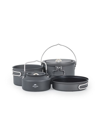 Опис набору посуду (каструля, казанок, сковорода, чайник) Naturehike CNH22CJ002, алюміній: Готувати улюблені страви та гарячі напої на природі просто та комфортно, якщо у вашому арсеналі є функціональний набір великогабаритного посуду Naturehike CNH22CJ002. Комплект складається з чотирьох елементів: каструлі, казанка, сковороди та чайника, які виготовлені з надлегкого алюмінієвого сплаву з нержавіючими властивостями. Висока теплопровідність металу сприяє швидкому нагріванню їжі та закипанню води, а наявність антипригарного покриття на сковороді запобігає пригоранню продуктів під час смаження. Обʼєм та габарити посуду такі: Каструля: об'єм – 2 л, розмір – 173 х 97 мм; Казанок: об'єм – 2.9 л, розмір – 190 х 116 мм; Чайник: об'єм – 1.4 л, розмір – 153 х 84 мм; Сковорода: розмір – 199 х 50 мм, товщина стінок – 1.2 мм. Посуд укомплектований складаними ручками з пластиковими вставками. Вони уберігають від опіків під час зняття ємностей з вогню. У наборі також є одна кришка універсального розміру, сумісного з каструлею, казанком і сковородою, що дозволяє суттєво заощадити на кінцевій вазі посуду. Кришка має теплоізоляційну ручку, а наскрізні отвори по обидва боки призначені для зливання води. Посуд відрізняється простотою у догляді — просто промийте його під проточною водою, щоб видалити залишки їжі та жиру, і протріть чистим, сухим рушником. Кожен елемент компактно складається один в одного, підвищуючи зручність транспортування. Для цього також передбачено мішок для зберігання. Вага набору дорівнює 928 г. Характеристики: похідний набір великогабаритного посуду для приготування їжі на природі; комплект складається з каструлі, казанка, сковороди, чайника та однієї кришки з отворами для зливання води; матеріал – алюмінієвий сплав; посуд укомплектований складаними ручками з теплоізоляційними вставками з пластику; наявність антипригарного покриття на сковороді; посуд складається один в одного для заощадження місця; розміри у складеному положенні – 204 х 122 мм; вага – 928 г; є мішечок для зберігання; гарантія – 1 рік.